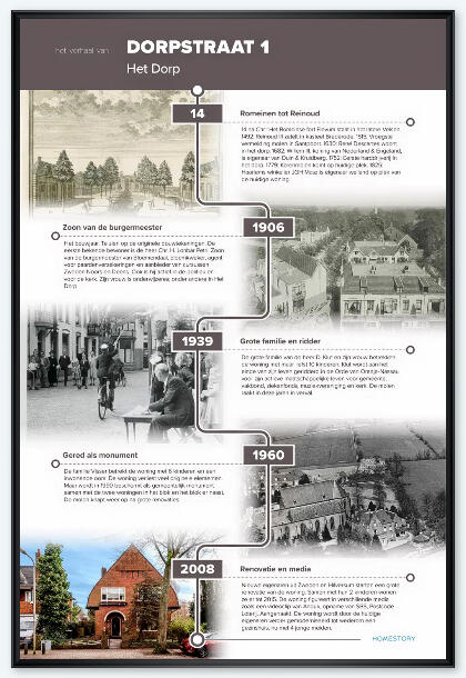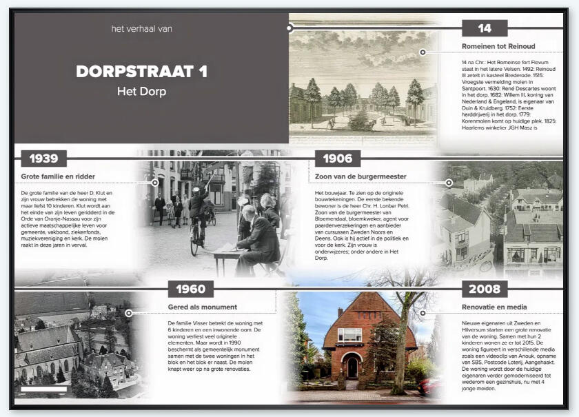 Beeldmateriaal: Bij elke periode wordt bijpassend beeldmateriaal gezocht. Zoals een oude foto van het huis, een oude kaart of een krantenartikel.